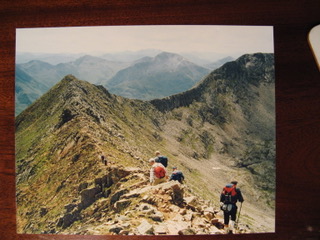 One of the photos in Andrew's e mail is of the crossing of the Carn Mor Dearg ridge on Ben Nevis. I remember we met you on the ridge as you had come across to meet us.